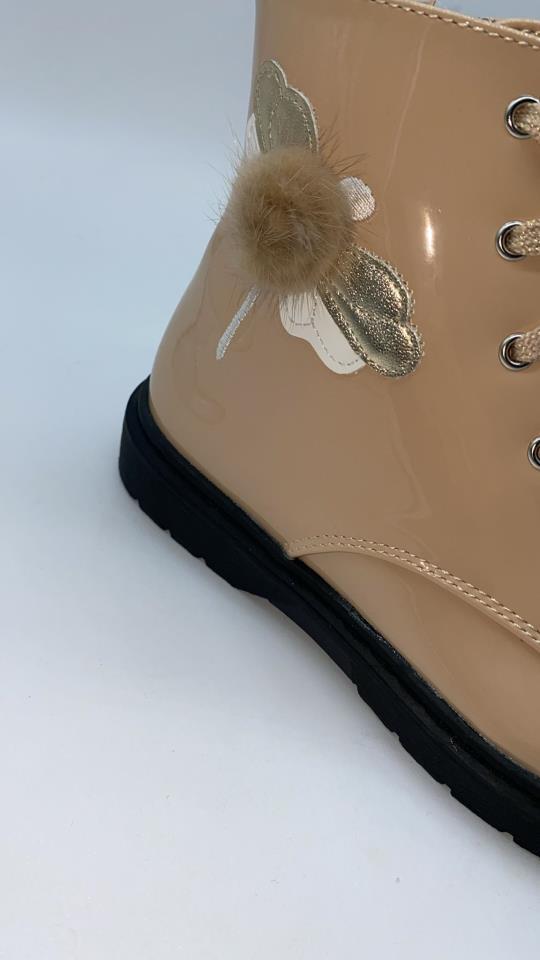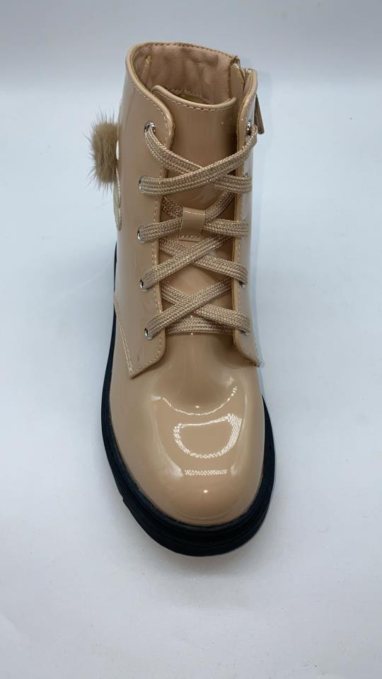 botin charol con decoracion pompon y cremallera para un juste perfecto
