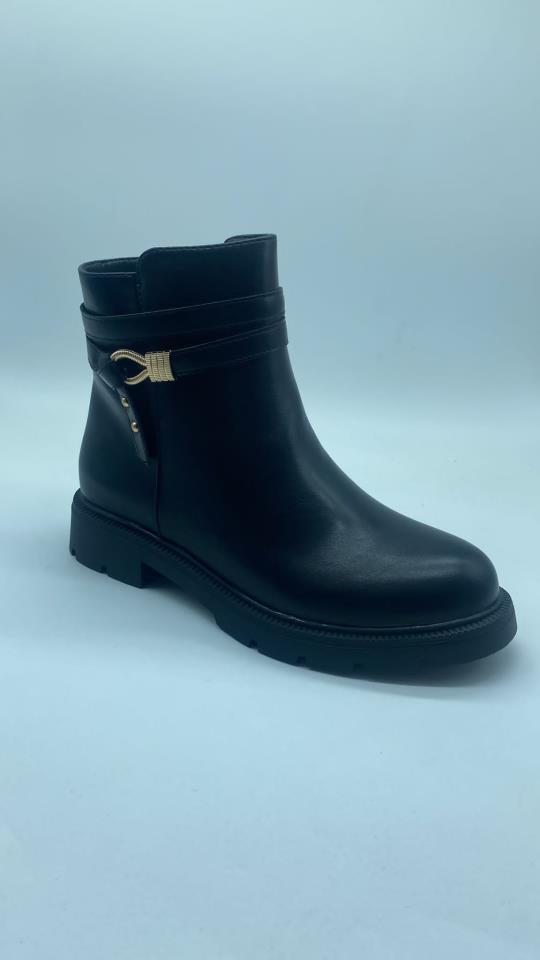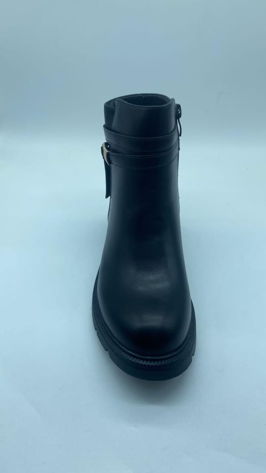 botin polipiel con cremallera lateral y suela de goma antideslizante.