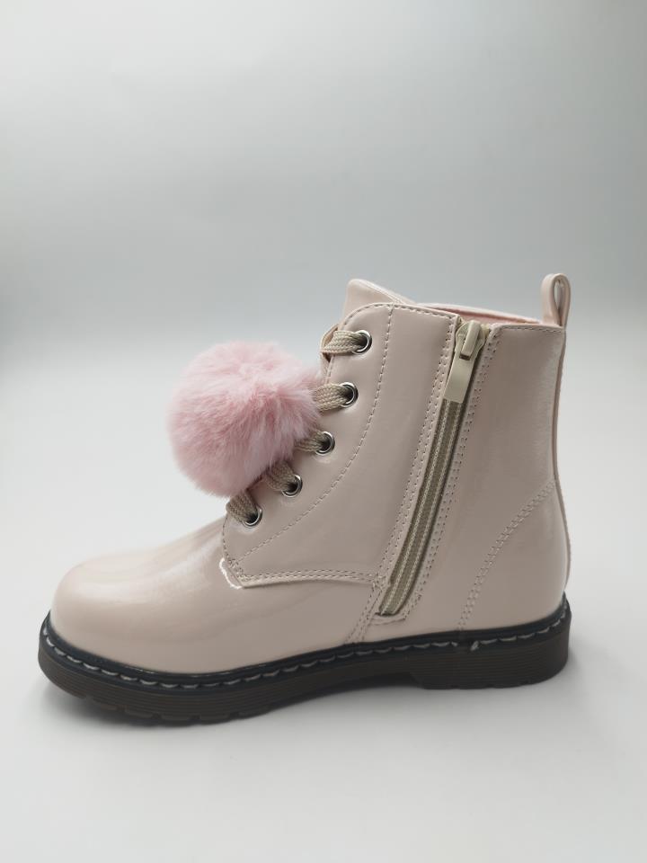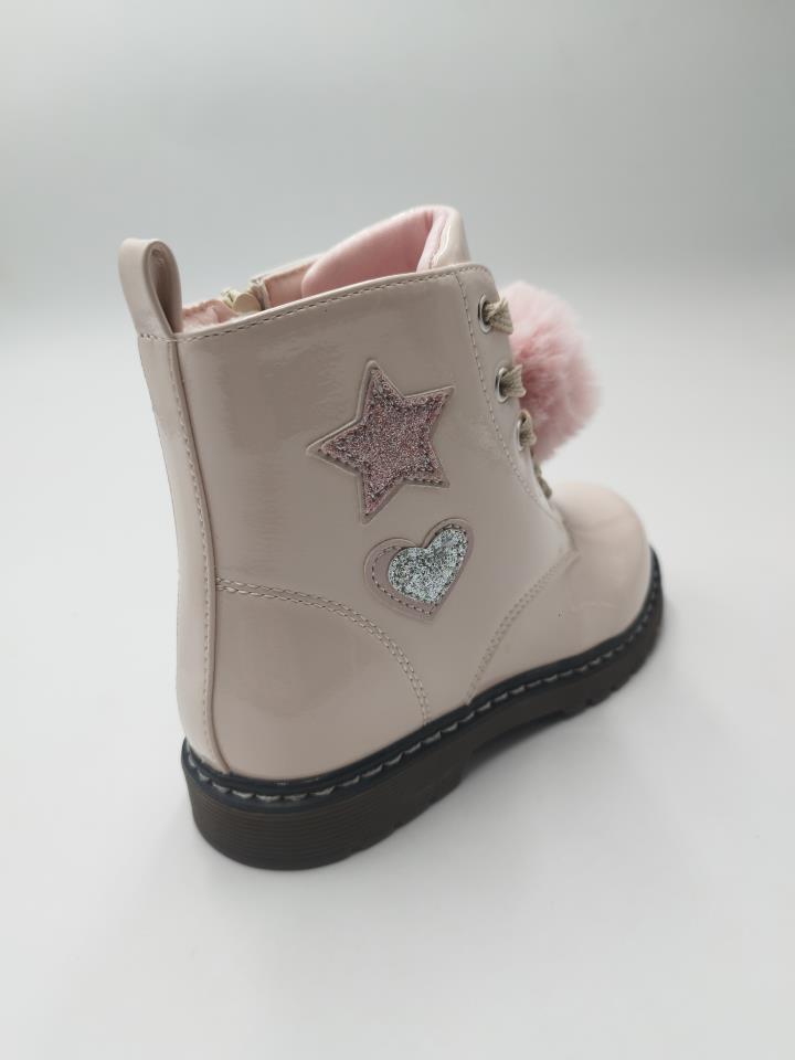 botin estrellas y corazones con pompom decorativo en cordoneras y cremallera lateral