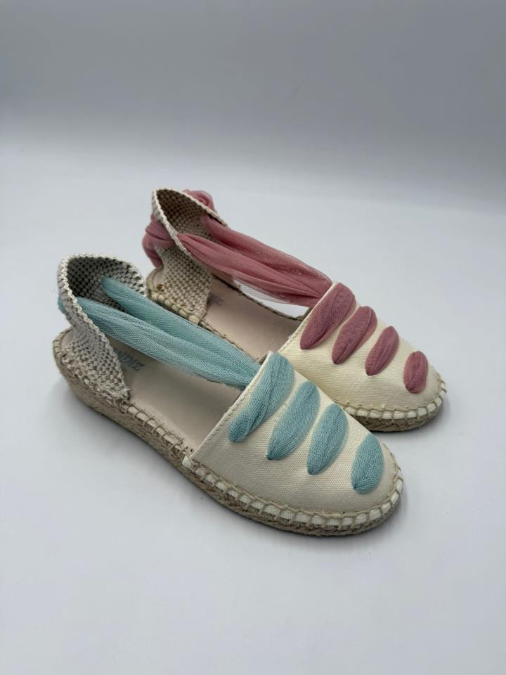 Esparteña con 4 cm cuña con plantilla gel atada tobillo con tull