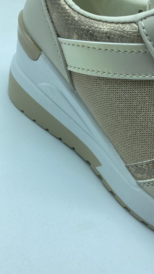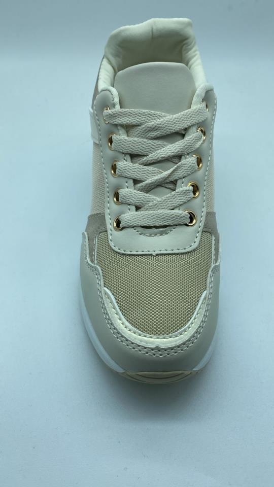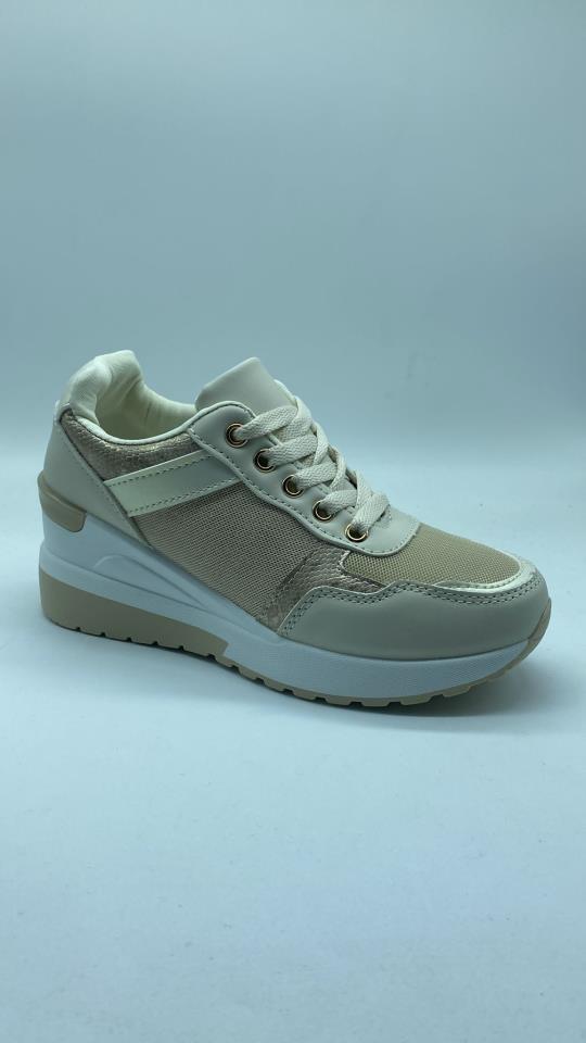 zapatilla dorada con cuña exterior y cordoneras ajustables